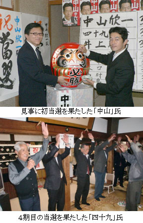 高岡市議会議員選挙【10/25告示-11/1投開票】は、JAMとして支援した「中山きんいち」(民主,新人)、「四十九清治」(民主,4期)の両名が見事に「当選!」を果たした。